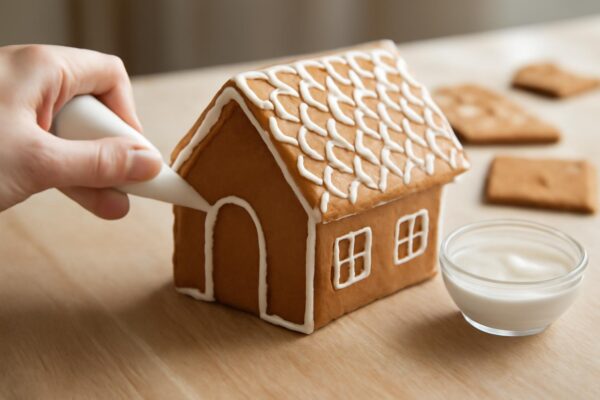 A tökéletes mézeskalács ház titka a megfelelő ragasztó: leggyakrabban cukormázat használnak, mert gyorsan szilárdul és erősen tart. Fontos a megfelelő állag és a türelem az összeállításnál.